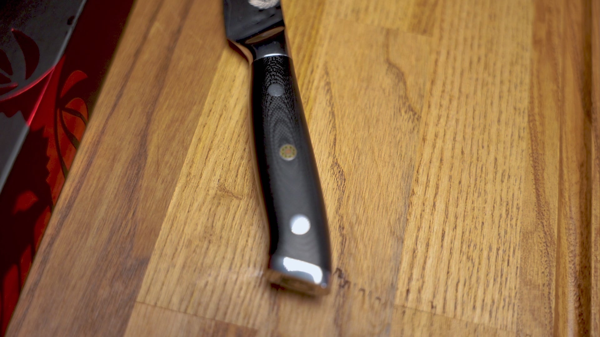 - ERGONOMIC HANDLE: The military grade resin G-10 handle features decorative Japanese mosaic and rivets for a secure grip while slicing and chopping.The non-slip design accommodates hands of all sizes, preventing fatigue and discomfort even during prolonged use.